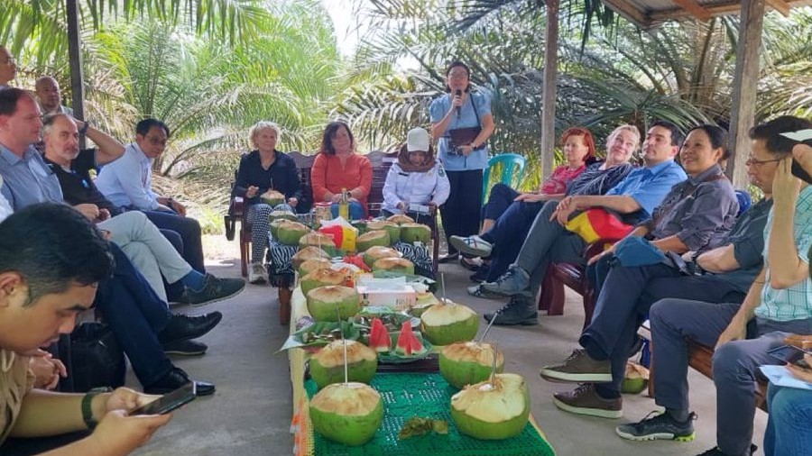 Selain sesi ramah tamah, kegiatan juga diisi dengan diskusi dan peninjauan lapangan terkait praktik pengelolaan lahan berkelanjutan yang telah dilakukan oleh masyarakat setempat dengan pendampingan dari GIZ Indonesia.