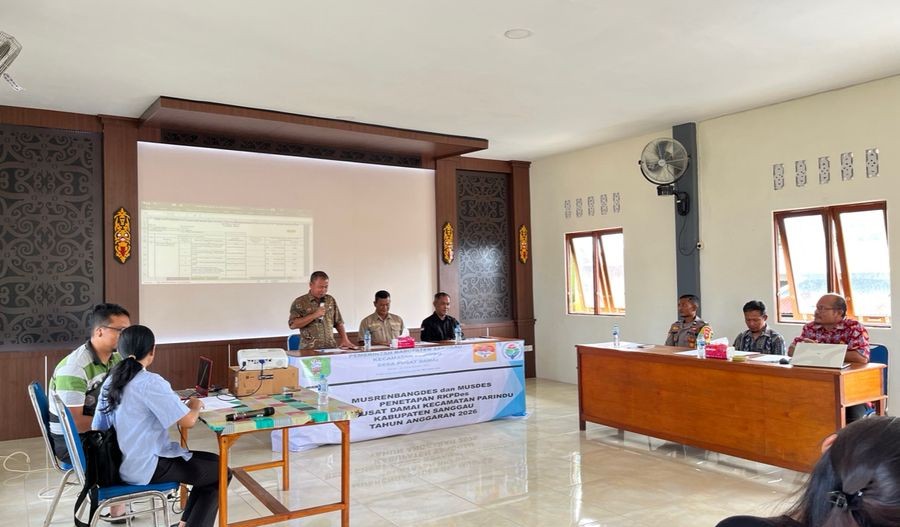 Pusat Damai, Kecamatan Parindu — Camat Parindu bersama Staf Trantib menghadiri kegiatan Musyawarah Perencanaan Pembangunan Desa (MUSRENBANGDes) serta Musyawarah Desa (Musdes) Penetapan Rencana Kerja Pemerintah Desa (RKPDes) Desa Pusat Damai untuk Tahun Anggaran 2026. Kegiatan berlangsung dengan tertib dan dihadiri berbagai unsur pemerintahan dan masyarakat.