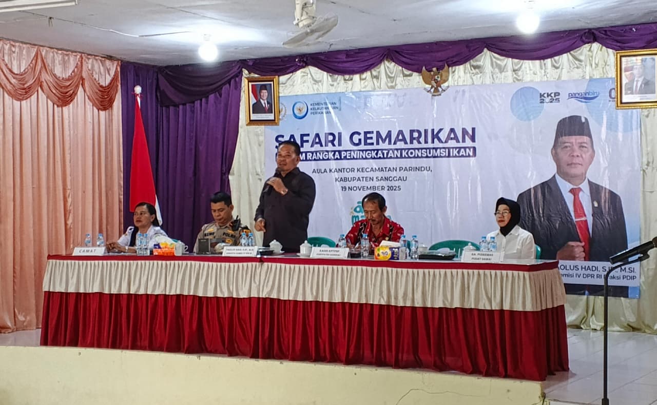 Parindu, 19 November 2025— Sekretaris Camat (Sekcam) Parindu mewakili Camat Parindu menghadiri kegiatan Safari Gerakan Memasyarakatkan Makan Ikan (Gemarikan) yang diselenggarakan oleh Kementerian Kelautan dan Perikanan (KKP) bersama Anggota Komisi IV DPR-RI, Bapak Paolus Hadi, S.IP., M.Si. Kegiatan tersebut berlangsung dengan lancar dan dihadiri oleh berbagai unsur pemerintahan, organisasi, serta masyarakat penerima manfaat.
