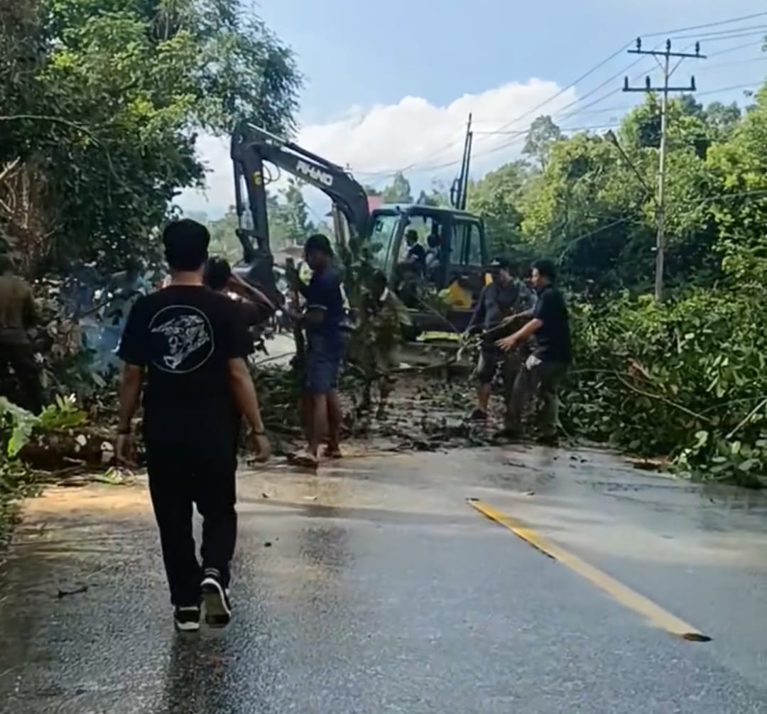 Curah hujan yang tinggi dan angin kencang menyebabkan sejumlah pohon di tepi jalan mengalami kerusakan pada batang maupun akar, sehingga berpotensi tumbang dan membahayakan pengguna jalan. Atas dasar tersebut, Pemerintah Kecamatan Parindu bersama perangkat desa dan warga bergerak melakukan pembersihan dan penebangan pohon yang dianggap berisiko.