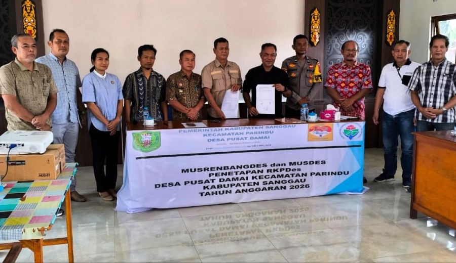 Camat Parindu, didampingi oleh Kasi Tata Pemerintahan (Tapem) serta Staf Kesra Kecamatan Parindu, menghadiri Kegiatan Musyawarah Desa (Musdes) Penetapan dan