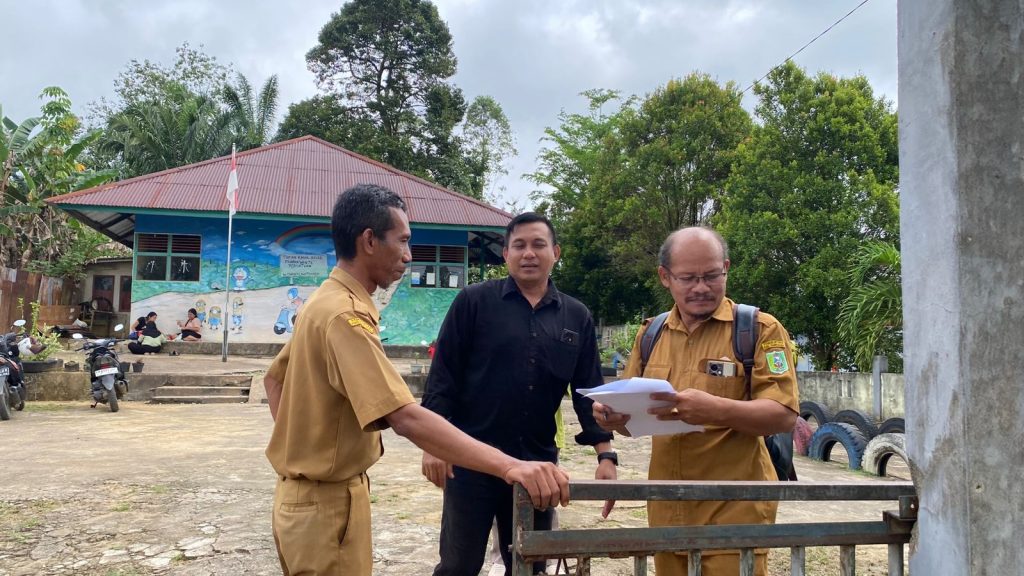 Pusat Damai, Parindu — Kasubbag PKAAK Kecamatan Parindu beserta staf, bersama Sekretaris Desa Pusat Damai dan Kepala Sekolah TK DWP