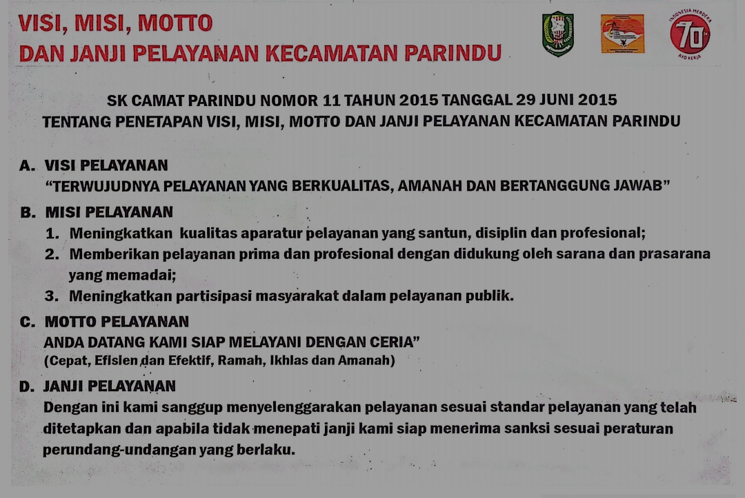 “Visi, Misi, Motto Dan Janji Pelayanan Kecamatan Parindu”